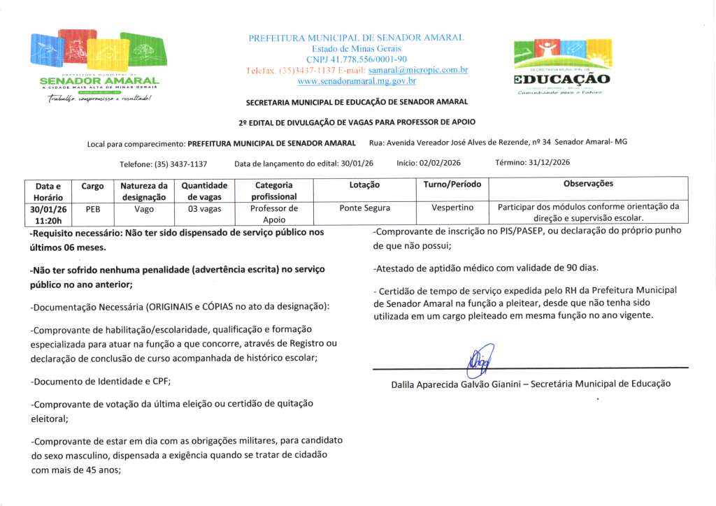 2º EDITAL PARA VAGA DE PROFESSOR DE APOIO